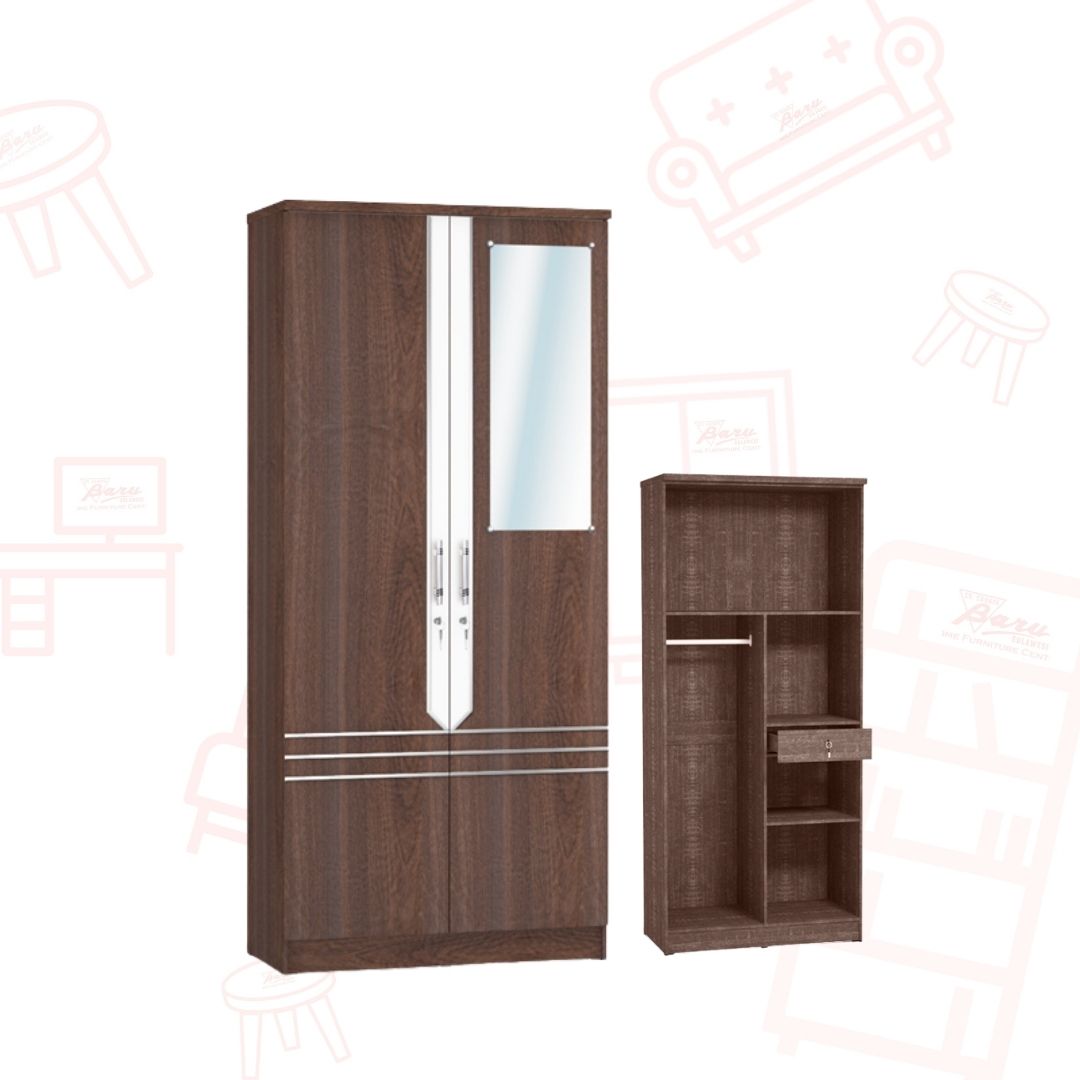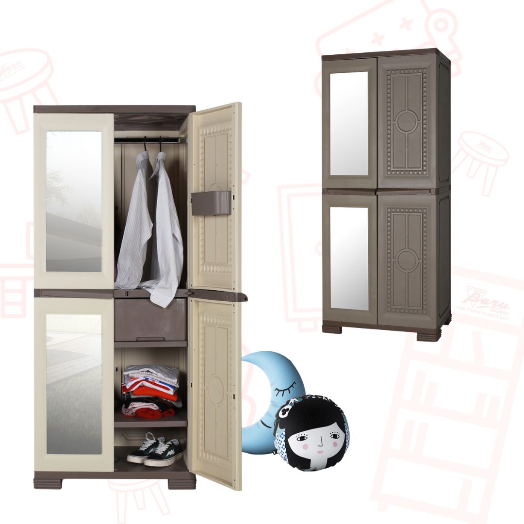 Lemari Pakaian Bestplast Rattan Series 3 Pintu Rak Cermin