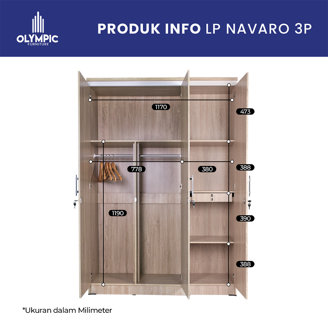 Lemari Pakaian Olympic Navaro 3 Pintu